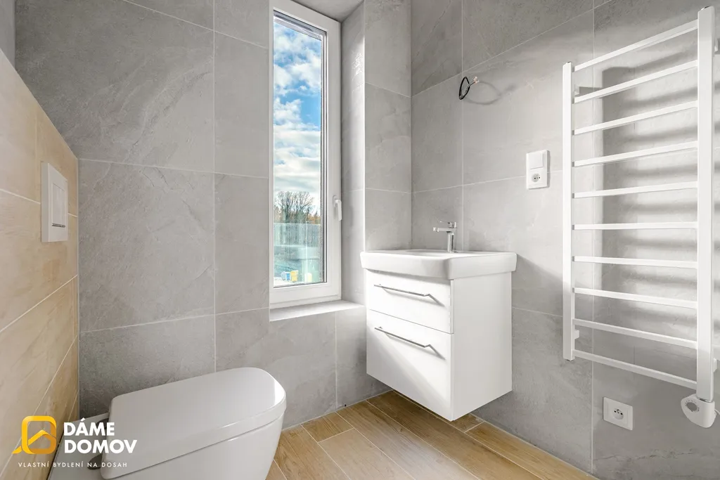 Dům je postaven s důrazem na pohodlí i úsporný provoz: je zateplený, má trojskla, venkovní žaluzie a podlahové vytápění. Komfort doplňuje tepelné čerpadlo, komín pro krbovou vložku, kvalitní vinylové podlahy, dveře a kompletní sanita – (koupelna + 2× WC).