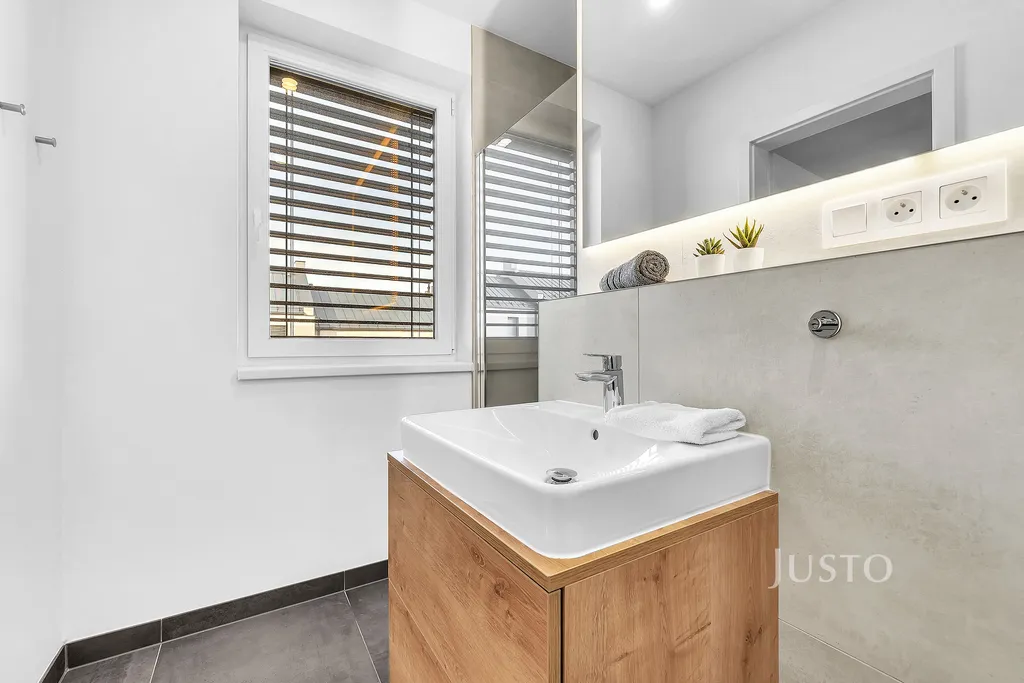 - nadstandardní kuchyňská linka na míru od truhláře, s velkým ostrůvkem (úložný prostor + vyvedená elektřina) a vestavěnými spotřebiči Siemens