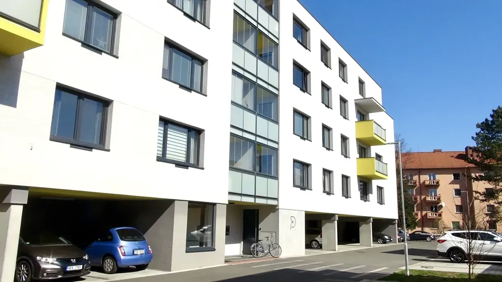 Dispozice bytu: předsíň, ložnice, obývací pokoj s kuchyňským koutem, zasklená lodžie, prostorná koupelna s vanou a WC. K bytu náleží prostorný sklep a možnost pronájmout kryté parkovací místo.