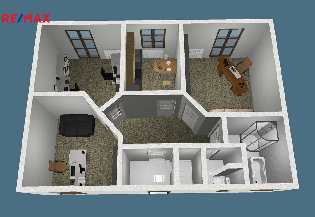 Objekt je zařízen kancelářským nábytkem a vybavením dle fotografií, vše je jako nové. V případě potřeby by majitel souhlasil se změnou dispozic dle potřeb nájemce.