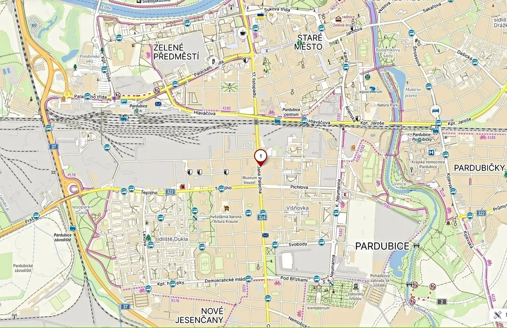 Ulice Jana Palacha patří k nejživějším třídám v širším centru Pardubic, s výbornou dopravní obslužností a kompletní občanskou vybaveností. V bezprostředním okolí najdete: