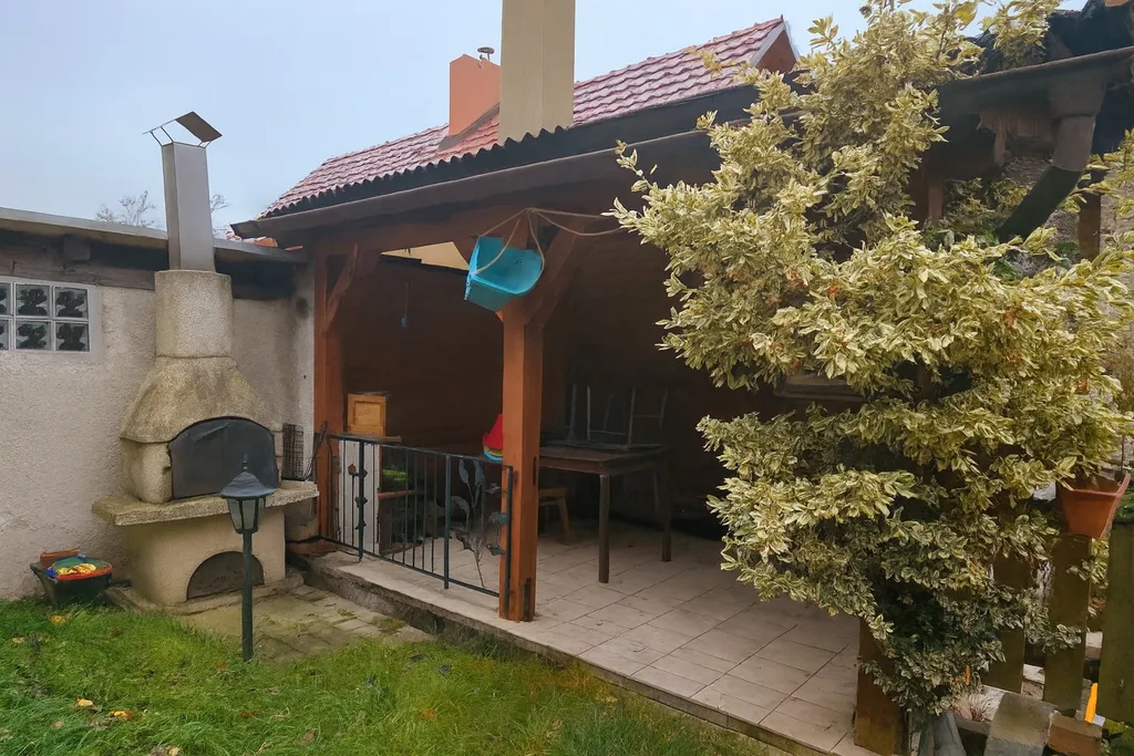 Za domem najdete příjemné soukromé posezení s altánkem a grilem, ideální místo pro relax či rodinné grilování.