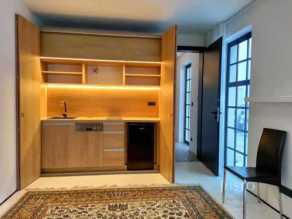 Stylový ateliér o velikosti 30,6 m² se nachází ve vnitrobloku bytového domu a je kompletně zařízen dle fotografií.