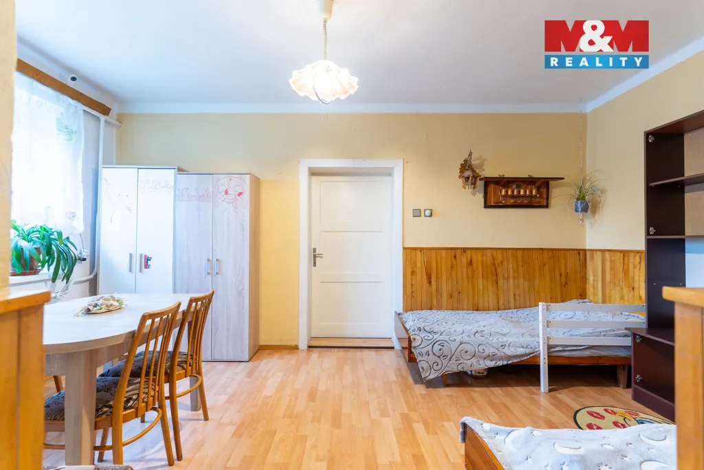Ve výhradním zastoupení nabízíme k prodeji samostatně stojící rodinný dům v klidné části obce Otinoves. Zděná nemovitost o užitné ploše cca 194 m² se nachází na pozemku 824 m² a nabízí dostatek prostoru pro pohodlné rodinné bydlení i možnost úprav dle vlastních představ. Dispozice 4+1 zahrnuje světlé a prostorné pokoje, kuchyň se spíží, koupelnu, samostatné WC a technickou místnost s kotelnou. Dům je částečně podsklepený, zateplený ze dvou stran, má plastová okna a je ihned obyvatelný bez nutnosti větších rekonstrukcí. Vytápění zajišťuje plynový kotel i kotel na tuhá paliva, ohřev vody elektrickým bojlerem. K nemovitosti náleží garáž, stodola a zahrada se vstupem přes dům.