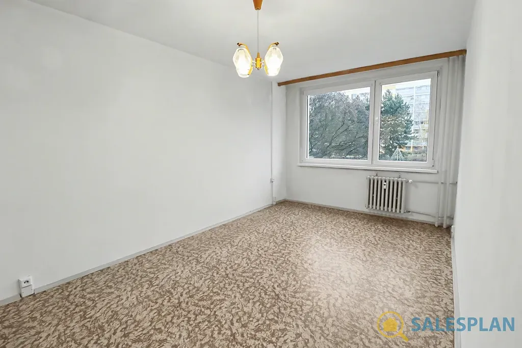 Byt je umístěn ve druhém nadzemním podlaží panelového domu s výhledem do zeleně. Poslední kolaudace byla v roce 2000. Jednotka je v původním stavu, vyklizena a připravena k rekonstrukci. Dispoziční řešení jednotky je velmi efektivní. Byt se skládá z prostorného obývacího pokoje s kuchyňským koutem, který svým umístěním nenarušuje obývací a jídelní část. Dále pak disponuje neprůchozí ložnicí, samostatnou koupelnou, toaletou a centrální chodbou.