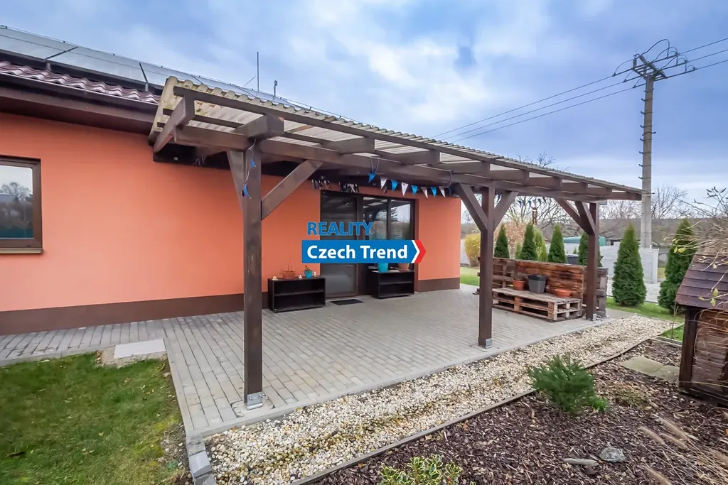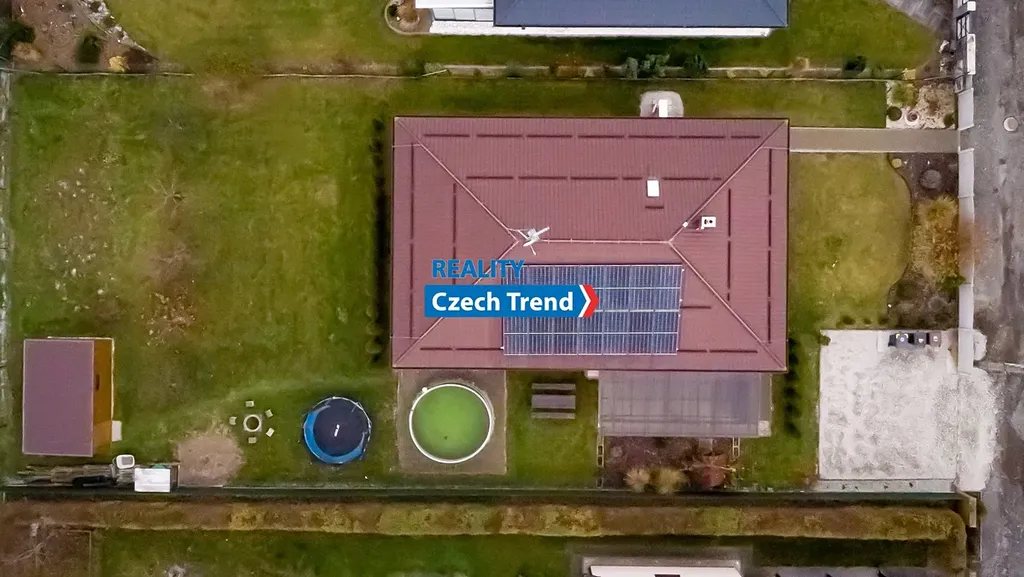 Kromě promyšlené dispozice se můžete těšit na celou řadu moderních prvků. Vytápění a ohřev vody zajišťuje tepelné čerpadlo (výkon 8kW, zn. Viessmann) v kombinaci s teplovodním podlahovým topením, což spolu s krbovými kamny zn. Romotop zaručuje nízké provozní náklady. Dalším upgradem úspory nákladů je fotovoltaika s výkonem 6,3 kWp, baterií 10kW zn. Growatt a 2x Wallbox. Kvalitní německá trojskla, zateplené základy, v podlaze polystyren, termoizolační ytong 45 cm, střecha zateplena 27 cm difúzní pěnou. Dalším nadstandardním prvkem je zahradní domek na pozemku v zadní části domu, o půdorysu 5 x 3 m, s ocelovou konstrukcí, zateplenou střechou a betonovou podlahou. Dům kolaudovaný před 8 lety je kompletně hotový a připravený k nastěhování.