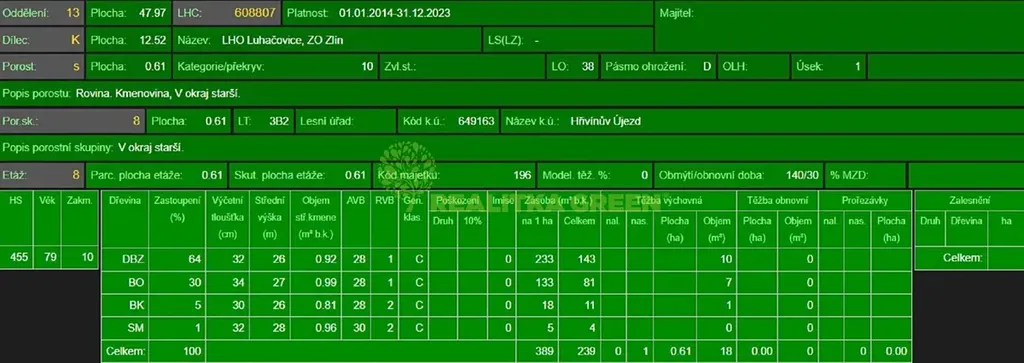 V případě zájmu zašlu LHO + porostovou mapu. Skutečný stav neodpovídá LHO.