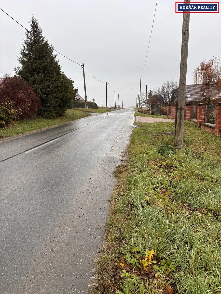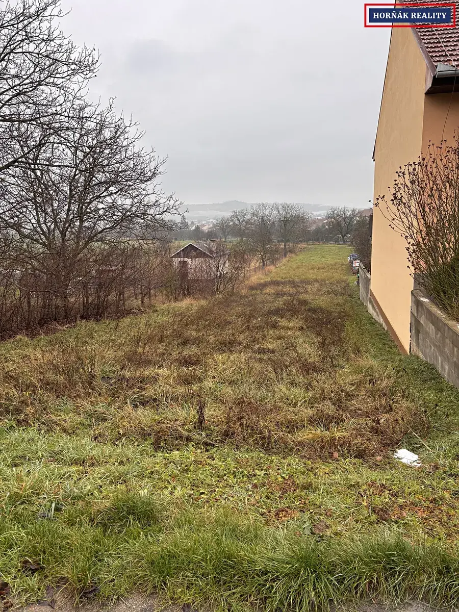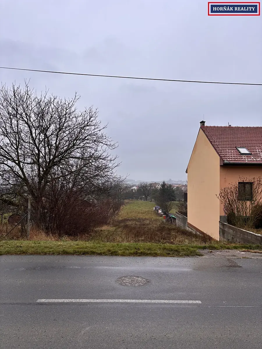 Samotný pozemek je rovinatý, obdélníkového tvaru s uliční šířkou 11,5m a celkovou výměrou 1266m2. Příjezd k pozemku je po obecní asfaltové komunikaci, zadní strana ústí na polní cestu. Umístění v lokalitě je proluka mezi okolními rodinnými domy a dle ÚP je možné zde stavět jeden RD o jednom NP s obytným podkrovím. Inženýrské sítě jsou na hranici pozemku.