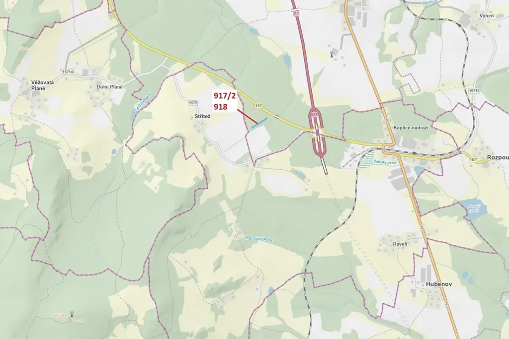 Lesní pozemky o výměře 3 965 m2, parcelní čísla 917/2, 918, podíl 1/1, katastrální území Netřebice, obec Netřebice, obec s rozšířenou působností Kaplice, okres Český Krumlov, Jihočeský kraj.