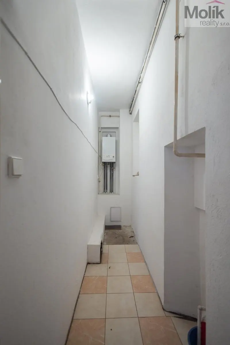 Dispozici tvoří dva velké pokoje, prostorná kuchyň, chodba, sklad a koupelna s WC.