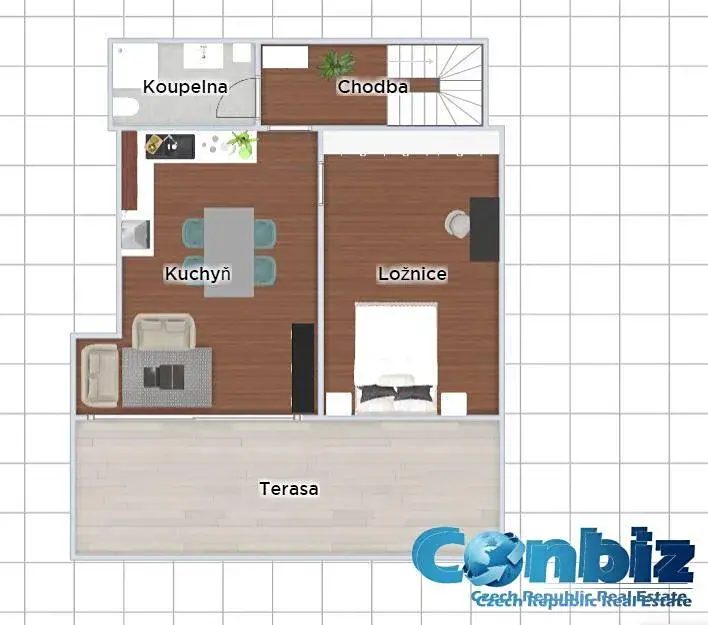 Moderně zařízený byt o velikosti 2kk, 62 m2 a terasou o velikosti 31m2 s nádherným výhledem na Prahu s možností krásného posezení v soukromí. Byt sousedí pouze s jedním bytem vedle. V novostavbě Rezidence Holečkova 53, Praha 5. Plně vybavený byt moderním nábytkem, 3x gauč, jídelní stůl, židle, TV, pokoj s prostornou postelí a pracovní částí. Kuchyň se spotřebiči, myčkou a lednicí. Fotky odpovídají realitě. Koupelna se sprchových koutem a toaletou. Do bytu se vchází po schodišti, pod kterým je připojena pračka se sušičkou. Nachází se v 6. a 7. patře objektu s výtahem. Terasové okno je vybaveno žaluzií na elektrický pohon.