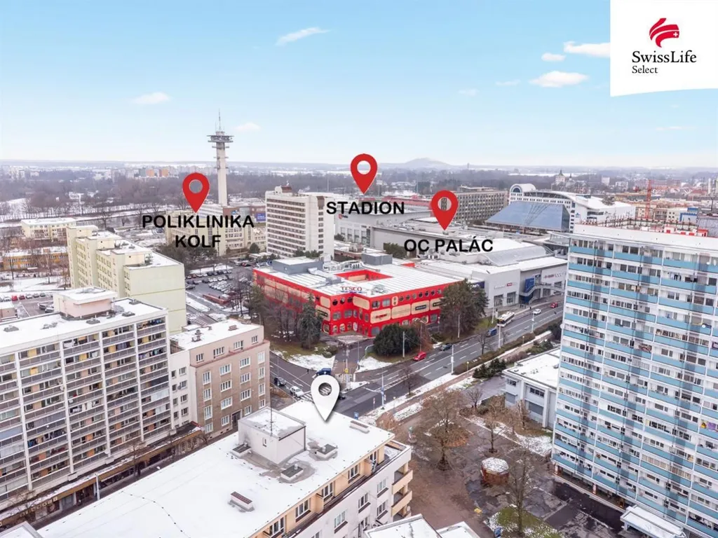 Tento byt zaujme také polohou v jedné z nejžádanějších lokalit města. Nachází se přímo naproti OC Palác, v bezprostřední blízkosti veškeré občanské vybavenosti i dopravní dostupnosti.