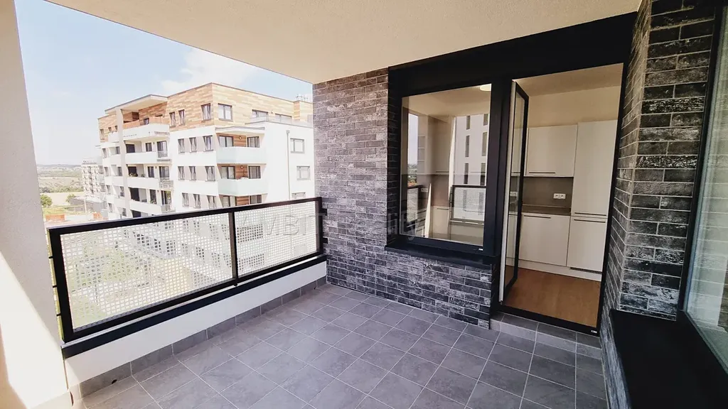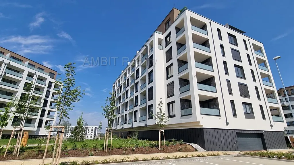 Tento moderní byt sestává z obývacího pokoje s kuchyňským koutem, koupelny s WC, předsíně a balkónu. Byt se pronajímá nezařízený - viz foto a video prohlídka v tomto inzerátu. Nově je v bytě velká šatní skříň. Kuchyňský kout je vybavený moderní kuchyňskou linkou s vestavěnými spotřebiči: elektrický sporák s indukční sklokeramickou varnou deskou, elektrická pečicí trouba, vysoká lednice s mrazákem, sklokeramická digestoř a myčka nádobí. Z obývacího pokoje lze vyjít na velmi prostorný krytý balkón. V koupelně se nachází umyvadlo se zrcadlem a osvětlením, vana, WC a přípojka na pračku.
