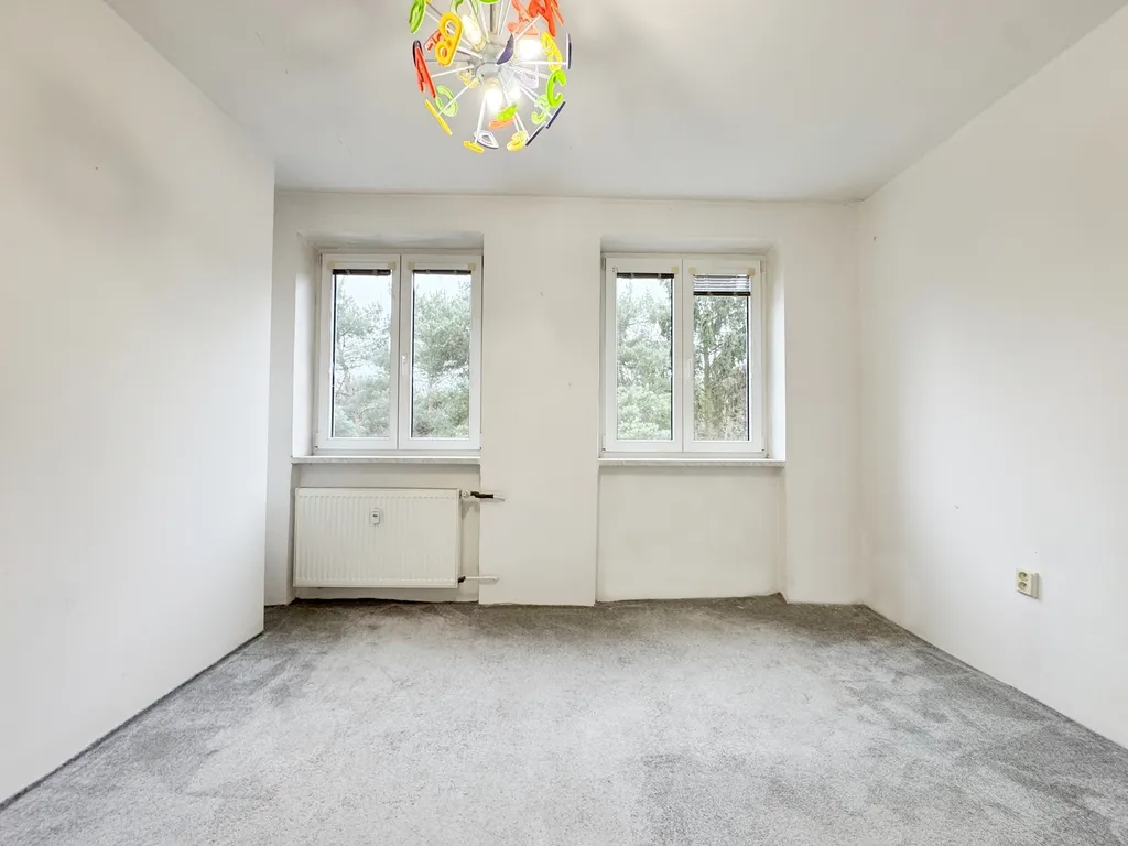 Obývací pokoj s kuchyní a lodžií má celkovou rozlohu 29 m2, pokoje potom 6,8, a 12 m2. Ve dvou dětských pokojích jsou koberce, v ložnici a obývacím pokoji plovoucí podlaha. Dva pokoje a předsíň disponují celkem třemi vestavěnými skříněmi. WC je samostatné, v koupelně je vana opatřená sprchovací zástěnou. V celém bytě jsou dřevěné zárubně a dveře s jednotným dekorem. Prostorná kuchyně s velkým oknem je opatřena kuchyňskou linkou ve tvaru U, je vybavena lednicí Liebherr, digestoří Zanussi, myčkou Bosch, el. troubou a sklokeramickou deskou Fagor. Obývací pokoj má lodžii orientovanou na jih. K bytu náleží samostatná garáž v přízemí domu o rozloze 19 m2.