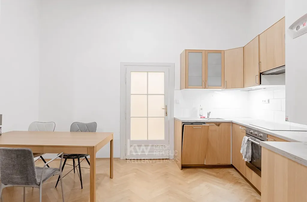 Dominantou bytu je velký obývací pokoj s rozlohou bezmála 27m2, který nabízí dostatek prostoru, oddělený kuchyňský kout, kde se nachází jídelní stůl. Dále zde najdete dvě průchozí prostorné ložnice, koupelnu, samostatnou toaletu a vstupní halu s místem pro úložné prostory. Vysoké stropy a původní podlahy dodávají bytu atmosféru klasického městského bytu v historickém centru. Kuchyňská linka je vybavena základními spotřebiči vč. myčky a mikrovlnné trouby, ostatní vybavení dle dohody. Byt bude před předáním čerstvě vymalovaný a uklizený.