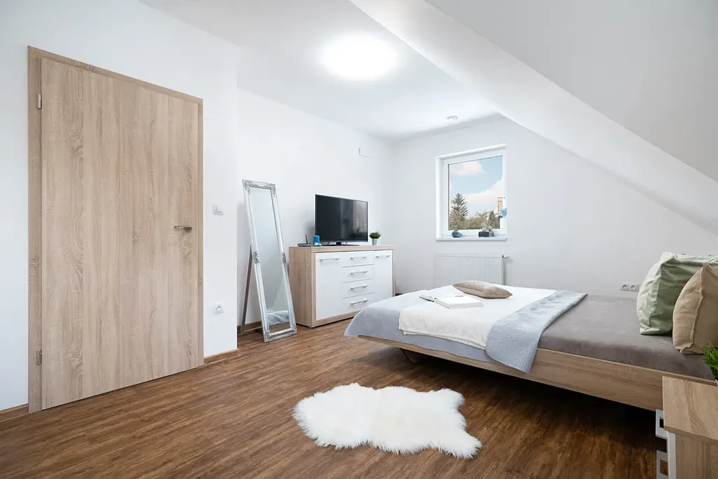 Patro nabízí klidovou část pro celou rodinu – velkorysé pokoje, dostatek úložných prostor a příjemné soukromí pro každého člena domácnosti. Dispozice domu umožňuje i jednoduché rozšíření na 6+kk, což ocení rodiny, které potřebují další pokoj, pracovnu nebo hobby místnost.