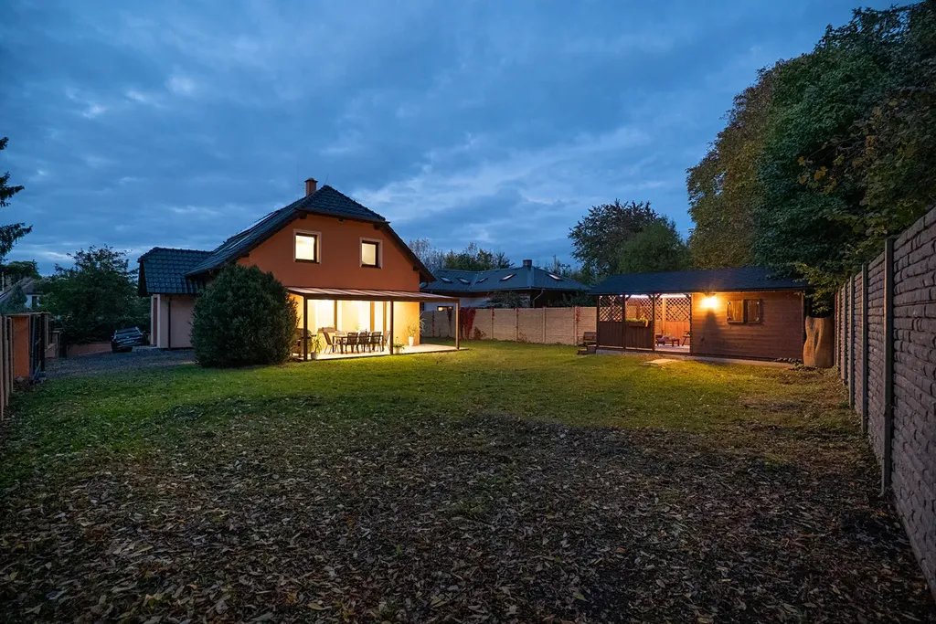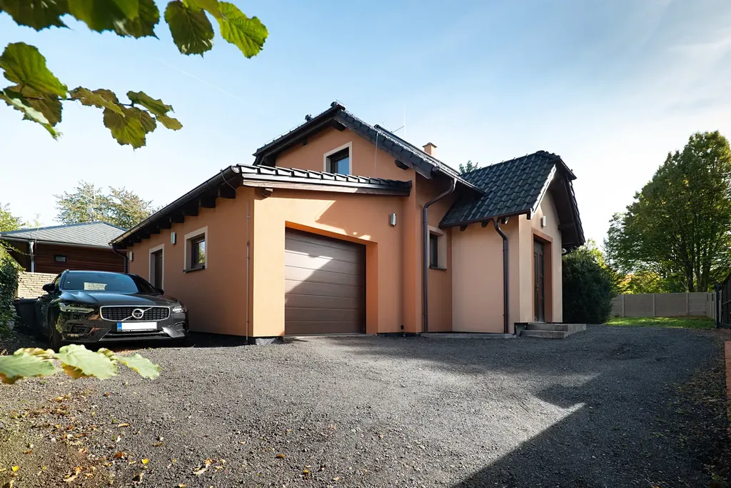 Dům je díky kvalitnímu zateplení a moderním technologiím téměř nízkoenergetický (tepelné čerpadlo, solární kolektory, rekuperace, podlahové topení apod.). Pozemek je kompletně oplocen vysokým betonovým plotem kombinovaným s hliníkovými lamelami, což zajišťuje absolutní soukromí. Vjezd umožňují dvě elektricky ovládané brány, na pozemku pohodlně zaparkujete až 5 osobních aut. Součástí je prostorná garáž s elektrickými vraty, přímým vstupem do domu, technickou místností a samostatnou toaletou.