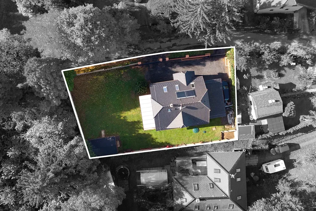 Zahrada o velikosti 626 m² je ideálně orientovaná, připravena na venkovní aktivity, relax i zahradničení. Díky rovinatému pozemku je dokonale využitelná a poskytuje příjemný klid, soukromí a využití pro celou rodinu.