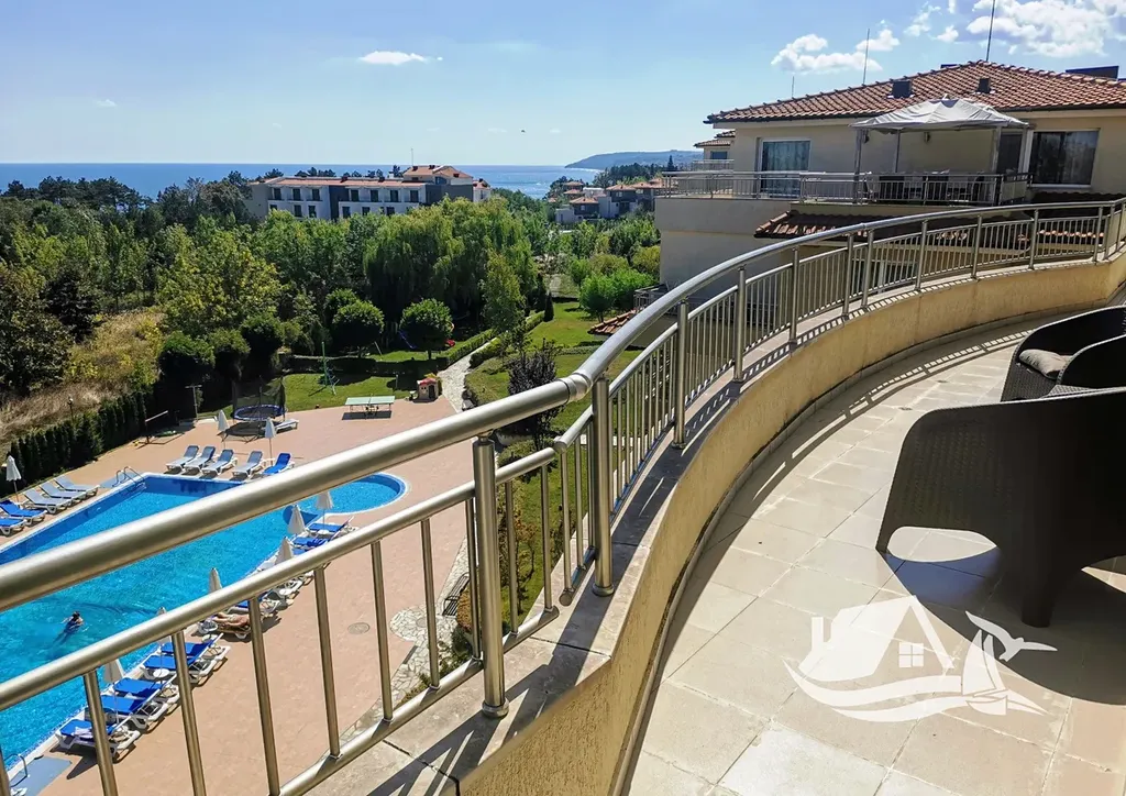 Nabízíme k prodeji výjimečný penthouse 3+kk o celkové ploše 169 m², umístěný v posledním pátém podlaží moderní rezidenční budovy v luxusním komplexu, který se nachází na klidném a malebném místě mezi oblíbenými letovisky Obzor a Byala. Tento jedinečný apartmán nabízí nejen komfortní vnitřní prostor, ale i přímý kontakt s přírodou – je situován v bezprostřední blízkosti moře a zároveň sousedí s rozsáhlým borovým hájem, který zajišťuje příjemné klima i soukromí.