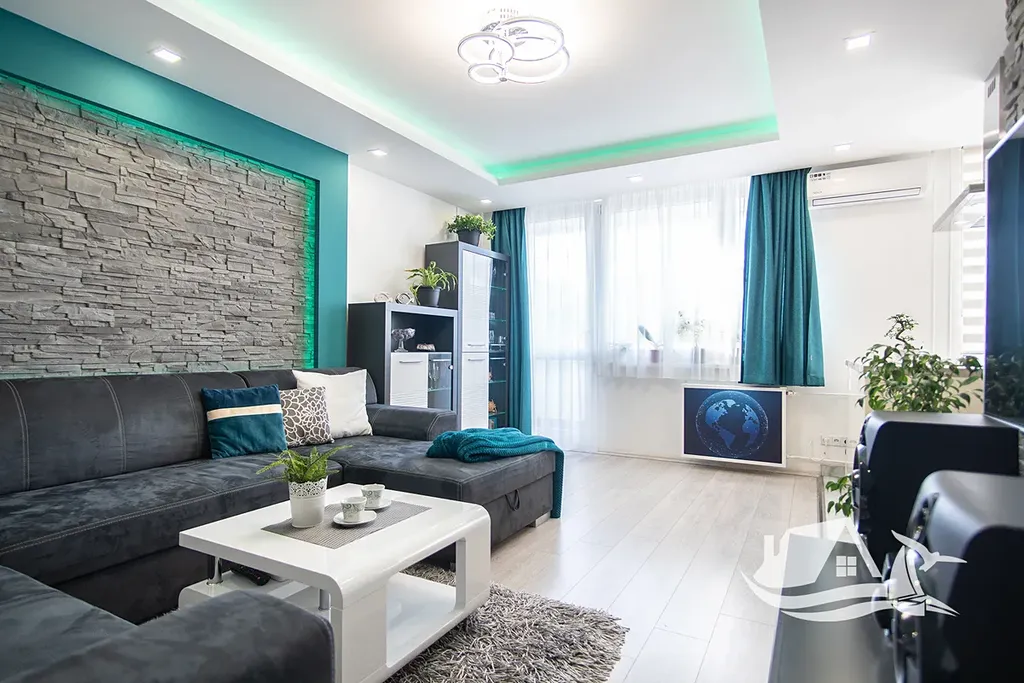 Během kompletní rekonstrukce prošly bytem nové elektroinstalace, vodovodní rozvody a snížené stropy s diskrétním LED osvětlením ve všech místnostech, díky čemuž prostor působí vzdušně a moderně až na míle daleko.