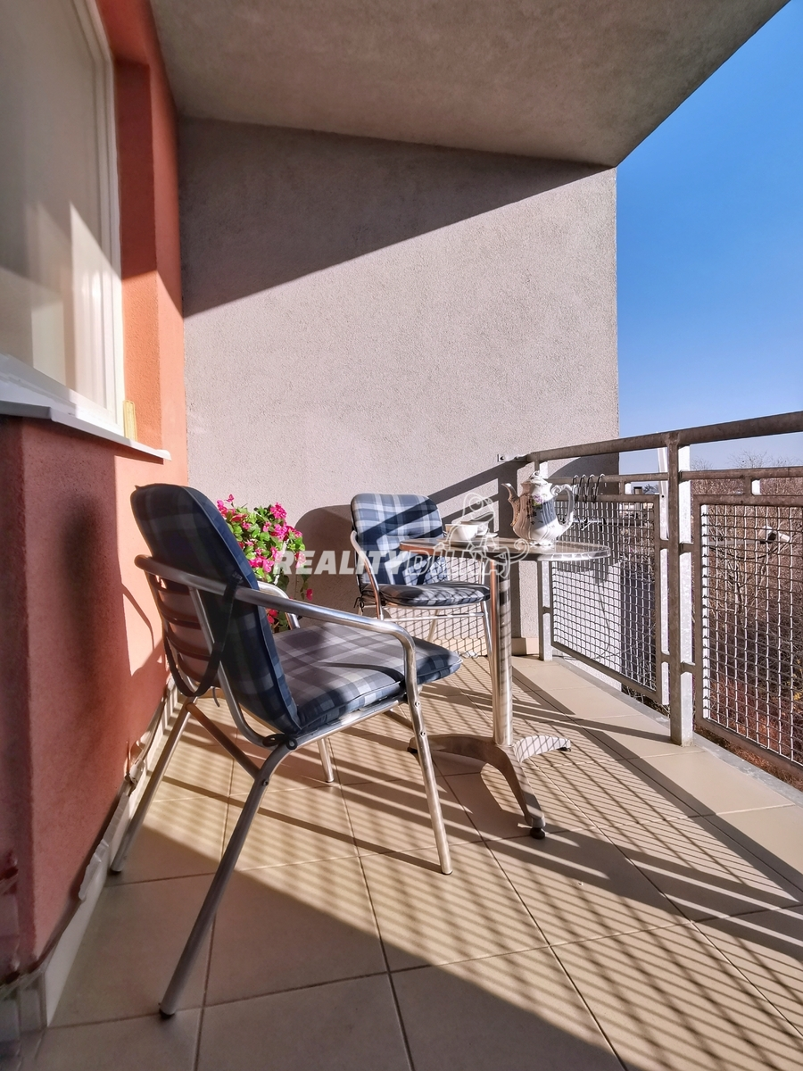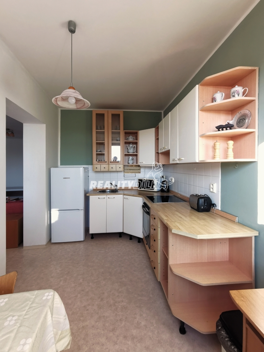 Nabízím vám částečně zařízený byt 1+1 s lodžií (39m + 6m) s okny na jihovýchod ve 4. patře domu z roku 2004.