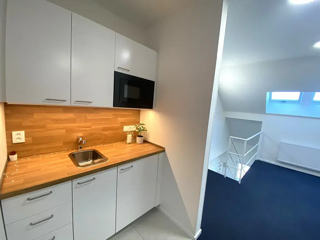 Ve vstupní hale je ideální místo pro sedačku s konferenčním místem, ale může tam také sedět například recepční či zde může být umístěn sekretariát. Kuchyňka o výměře cca 1,60m2 je vybavena lednicí, mikrovlnnou troubou a spoustou úložného prostoru. WC jsou samostatné, každé vždy s umyvadlem o výměře cca 1,26m2 a cca 2,11m2. Chodba vedoucí do jednotlivých místností má výměru cca 23,70m2. Kanceláře jsou samostatné, celkem je jich osm. Každá je vybavena klimatizací značky Sinclair, která chladí i topí. Místnosti jsou poměrně veliké a jejich výměra činí cca 12,94m2, cca 12,84m2, cca 12,76m2, cca 11,70m2, cca 14,90m2, cca 11,06m2 a 2x 12,08m2. Na konci chodby je samostatná místnost o výměře cca 3,10m2, která může sloužit jako úklidová místnost, archiv, ale i jako serverovna.