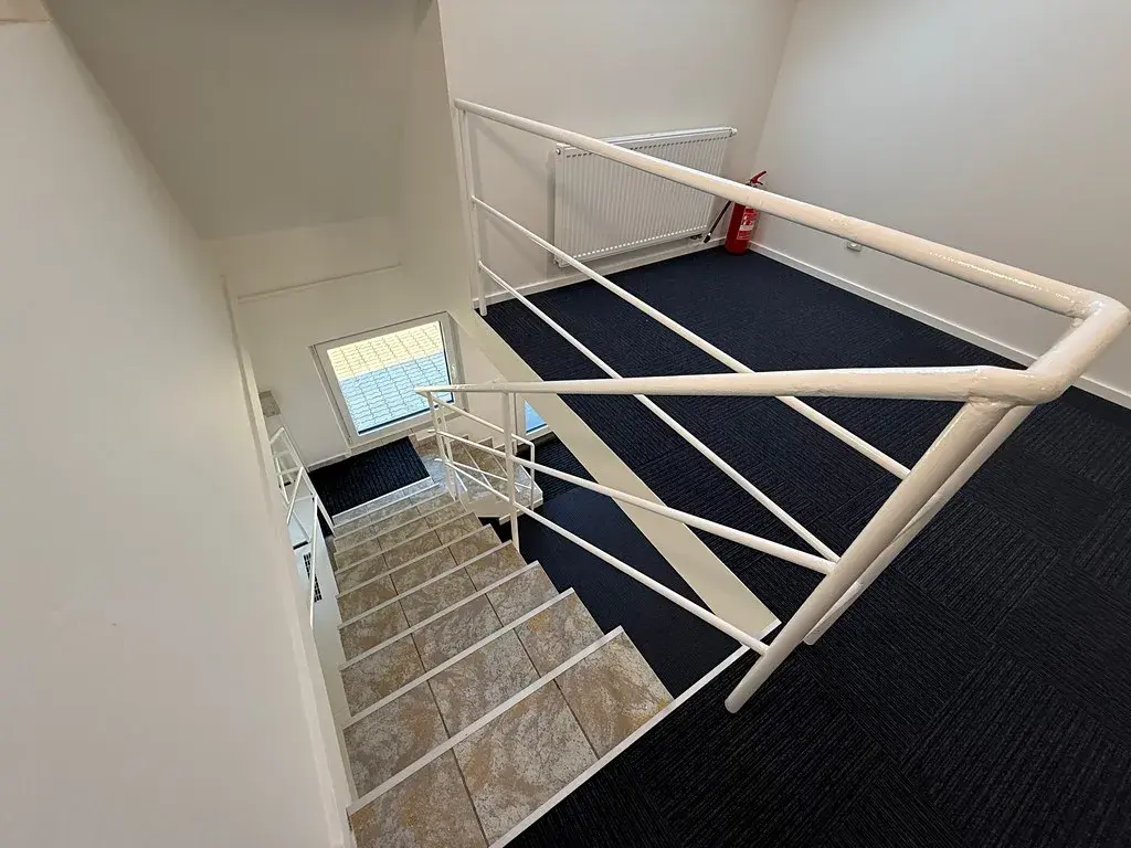 V přízemí vejdeme do vstupní haly, která přímo vybízí k vybudování recepce. Její celková plocha činí cca 17,22m2. V této části je jedna samostatná kancelář o cca 14,43m2, která by byla ideální zasedací místností, ale i klasickou kanceláří nebo obchodním místem.