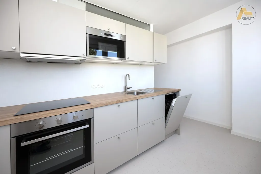 Moderní nová kuchyně s úspornými spotřebiči a myčkou čeká jen na to, až se v ní začnou psát vaše kulinářské příběhy. Každý kout zde dýchá čistotou a půvabem.