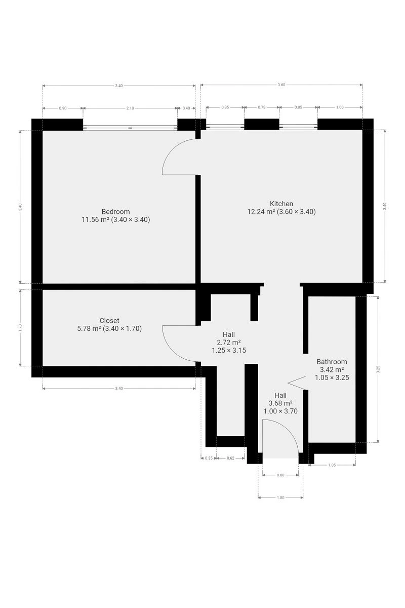 Byt se nabízí volný k zařízení dle vlastních představ. Kuchyňský kout disponuje lednicí s mrazákem, elektrickou troubou a varnou deskou. Obývací část je nezařízená, stejně jako ložnice. V koupelně je sprchový kout, zrcadlo, koupelnová skříňka, umyvadlo, pračka a WC.