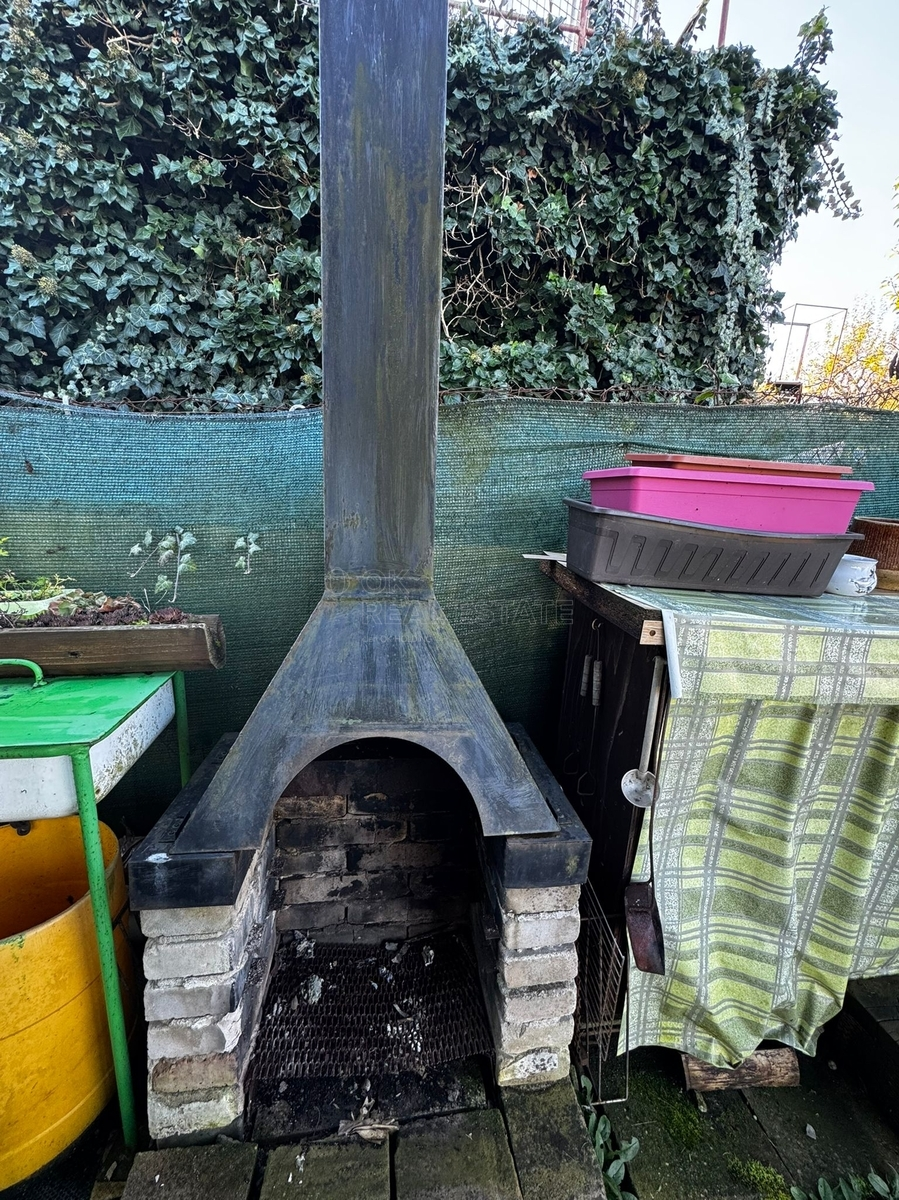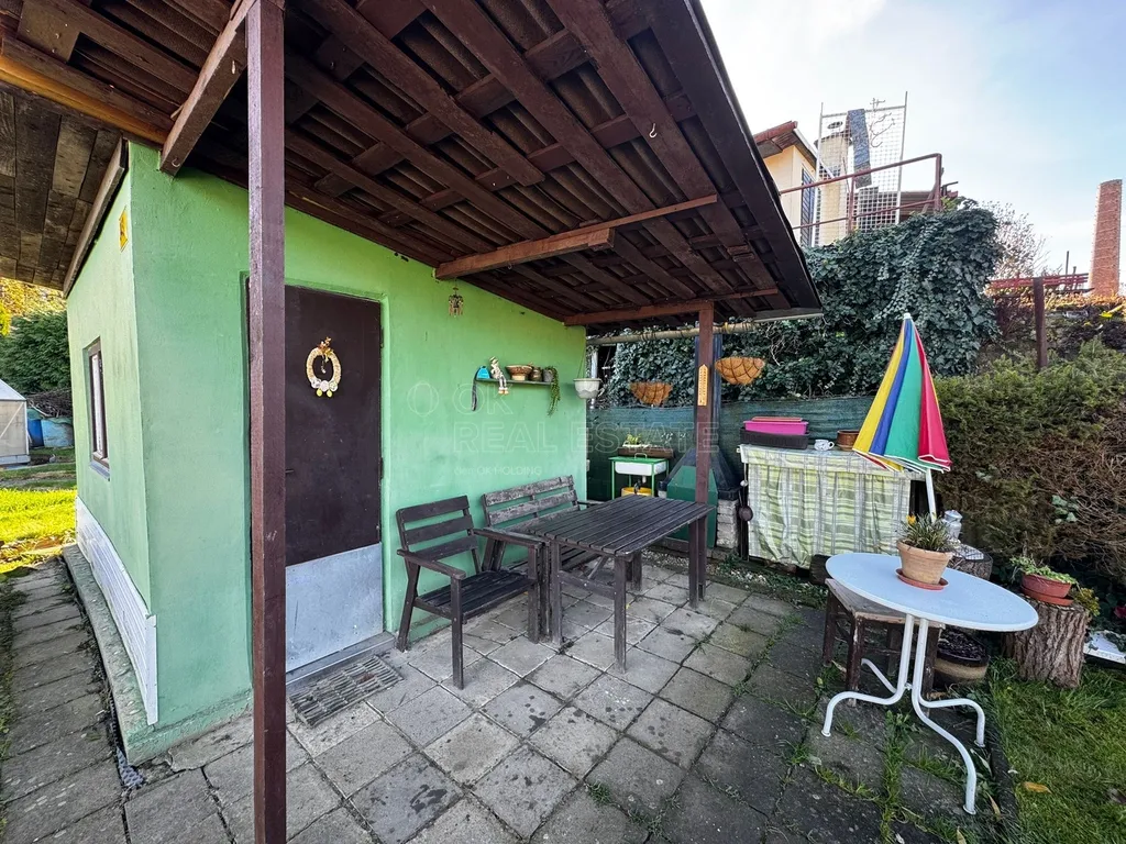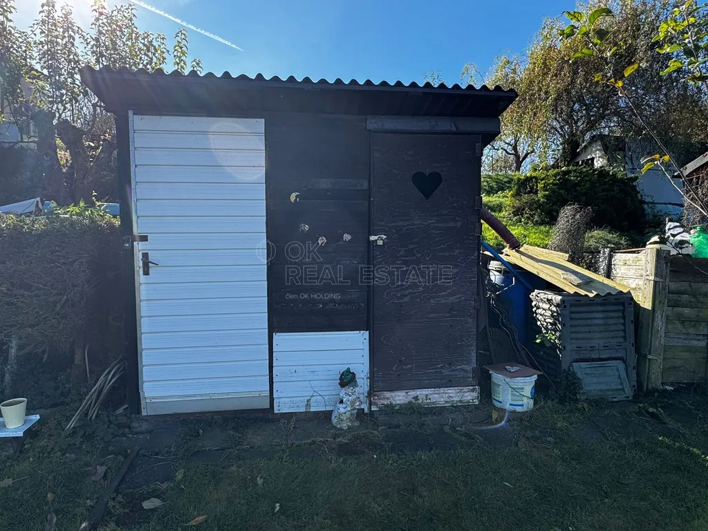 Na pozemku se nachází vybavená zahradní chatka, kterou lze využít i pro přespání – včetně vybavení, viditelného na fotografiích. Exteriér chatky nabízí venkovní posezení s funkčním krbem, ideální pro letní večery. Dále zde je venkovní sprcha pro letní používání a stolní i venkovní gril vhodný k pohodovému grilování.