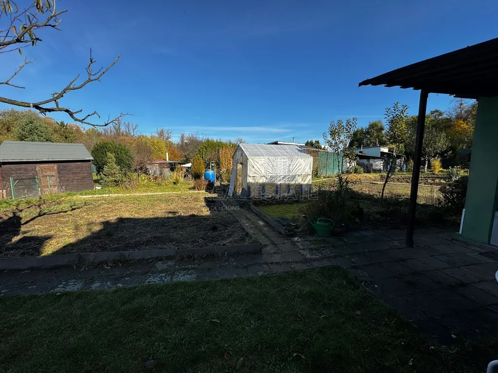 Na pozemku stojí zahradní chatka o zastavěné ploše přibližně 8 m² (včetně vybavení) – zaznamenaná v katastru nemovitostí.