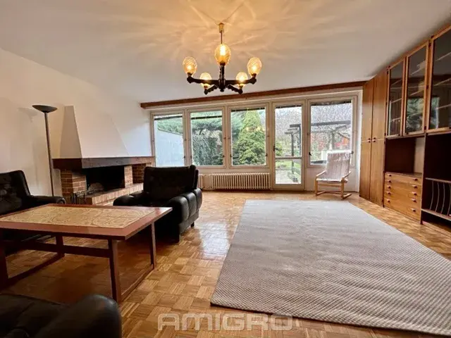 1. patro - obývací pokoj se vstupem na zahradu (31 m2), kuchyně se vstupem na terasu (20 m2), spíž, koupelna s vanou, toaleta