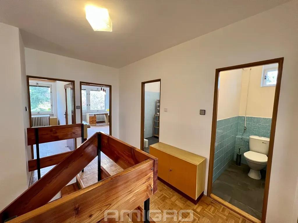 2. patro - 4 pokoje se samostatnými vstupy (15 m2, 13 m2, 13 m2, 12 m2), koupelna s vanou, toaleta.
