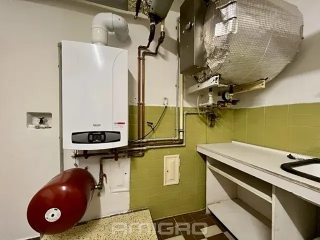 K ohřevu vody a vytápění domu slouží zánovní plynový kotel.