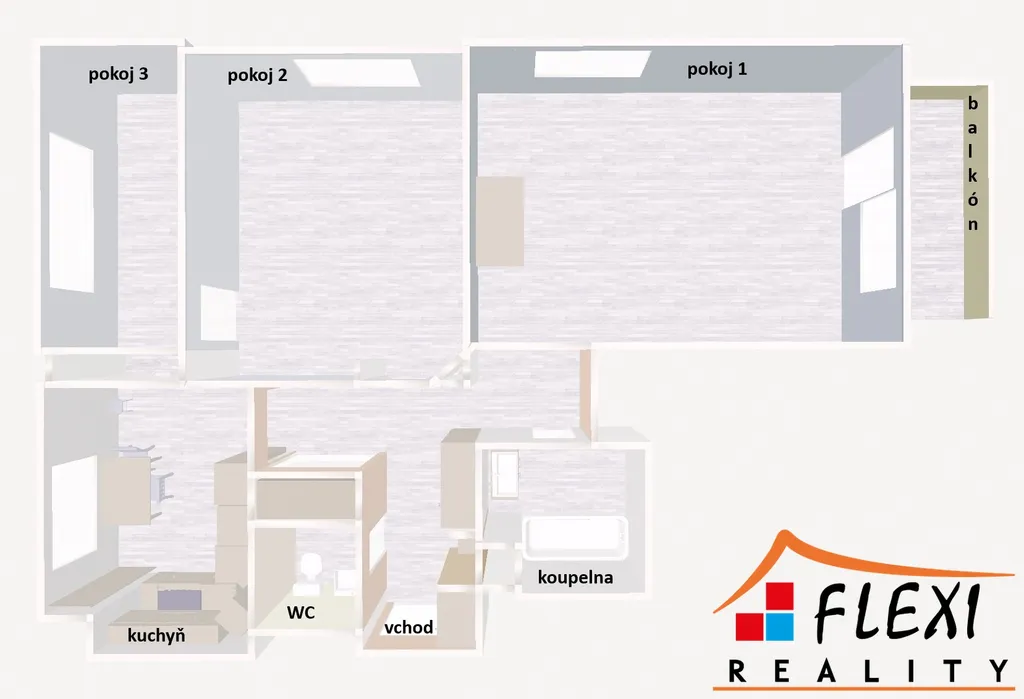 K dispozici vám je kuchyňská linka s vestavěnými spotřebiči, koupelna s vanou, samostatná toaleta, útulný obývací pokoj s přímým vstupem na balkón, ložnice a dětský pokoj či pracovna.