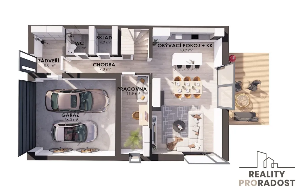 Není zahrnuto položení podlah, fasádní barva a kuchyňská linka. Kupní cena se může lišit dle domluvy na dokončení.