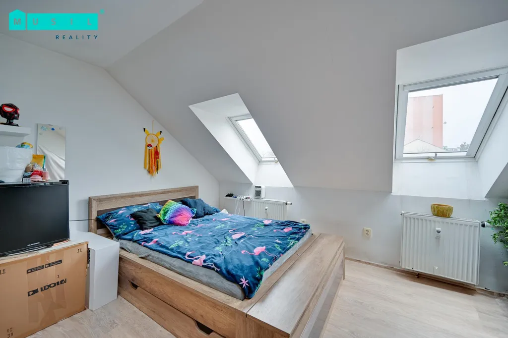 Pronájem pěkného, podkrovního bytu 3+1 o rozloze 80 m2 na ulici Přichystalova. Byt se nachází v 1.patře rodinného domu se třemi bytovými jednotkami. Byt disponuje třemi neprůchozími pokoji, vybavenou kuchyní - včetně myčky nádobí, lednice, varné desky a elektrické trouby. V prostorné koupelně je k dispozic sprchový kout a dvě umyvadla. K bytu náleží oplocený dvorek, který je možné využít k posezení. Parkovací stání přímo před domem poskytuje pronajímatel zdarma. K dispozici také úložný prostor v přízemí domu. Bez zvířat. Byt je svou velikostí a umístěním, v oblíbené lokalitě ( příroda), vhodný zejména pro mladé rodiny. Volné od 1.února. Cena: 15.900,- Kč/ nájem + 5.500,- Kč energie. Provize RK 15.900,- + DPH. Kauce ve výši dvou nájmů.