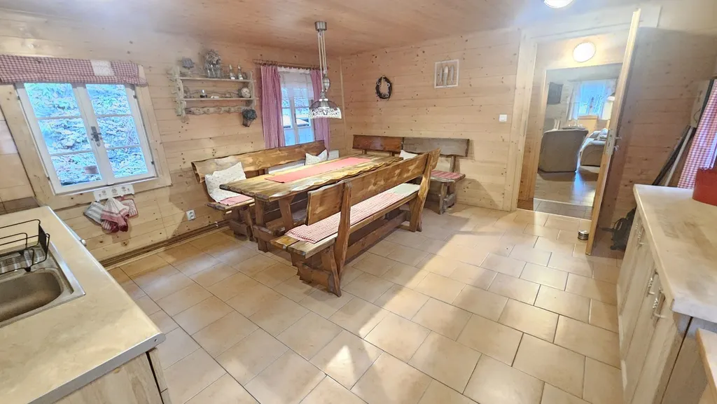 Dům stojí na místě původní historické chalupy. Nemovitost je v perfektním technickém stavu, napojená na obecní vodovod, kanalizaci a elektřinu, a v posledních letech slouží částečně k soukromé rekreaci majitelů a částečně jako úspěšné ubytování přes Booking. Perfektní volba pro ty, kteří hledají druhý domov na klidném místě, případně zajímavou investici s možností okamžitého výnosu.