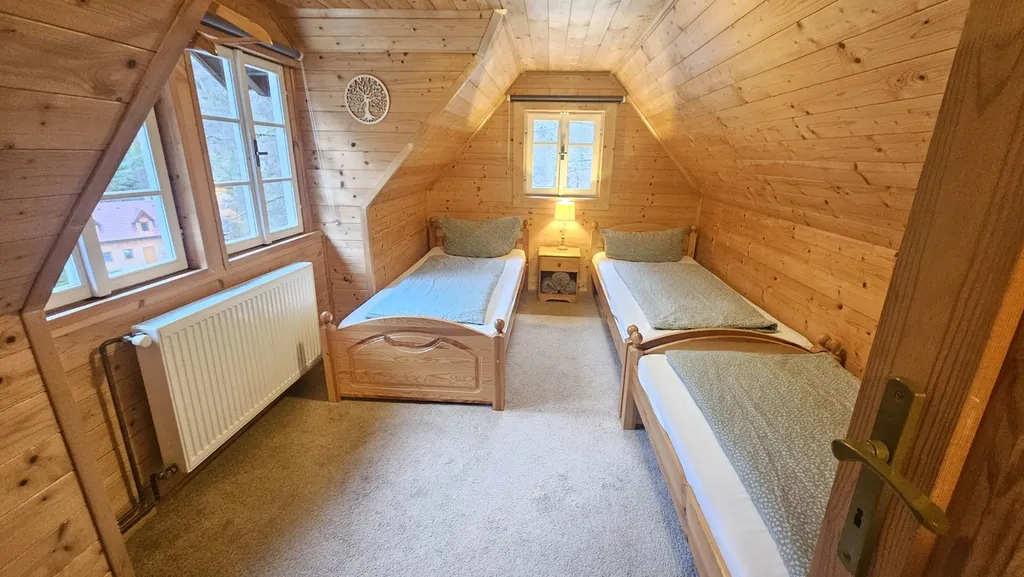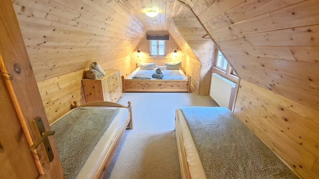 Patro - dvě útulné obytné místnosti sloužící jako ložnice s kapacitou pro rodinu i návštěvy.