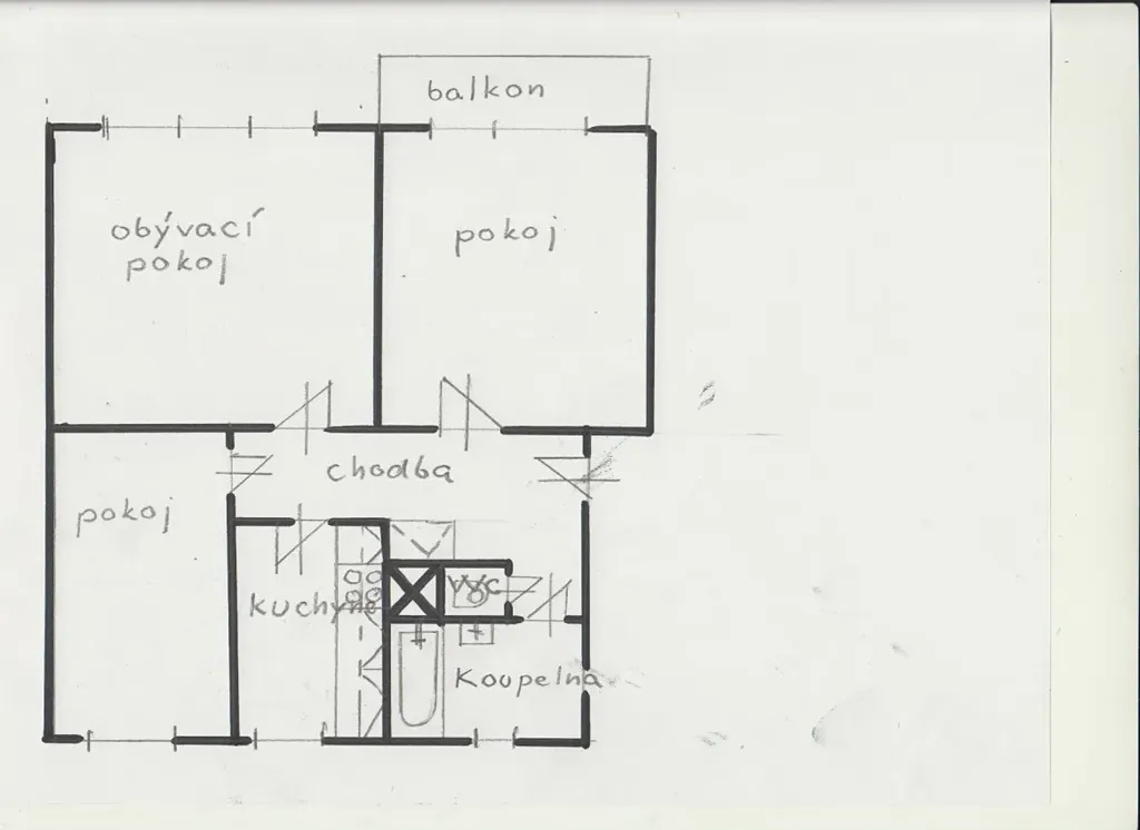 Nabídka prodeje světlého a slunného bytu o dispozici 3+1 s balkonem, nacházejícího se ve 3..NP (2.patře) zděného bytového domu o celkem 3.N.P. bez výtahu v Čerčanech, ul. Družstevní.