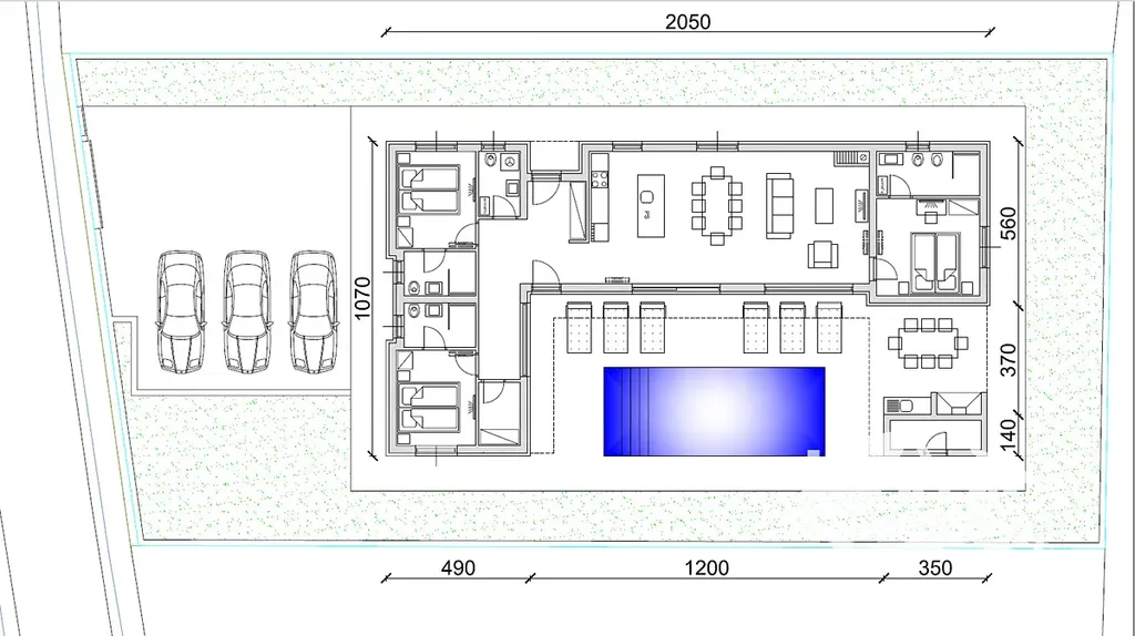 Moderní provedení interiéru stojí na velkorysém obytném prostoru s plně vybavenou kuchyní, jídelnou a světlým obývacím pokojem, odkud je krásný výhled na terasu a bazén. Tři prostorné ložnice s vlastními koupelnami poskytují maximální pohodlí pro rodinu i hosty, doplňuje je samostatné WC a praktická spíž. Celý dům je klimatizovaný, takže vás nezaskočí žádné roční období.