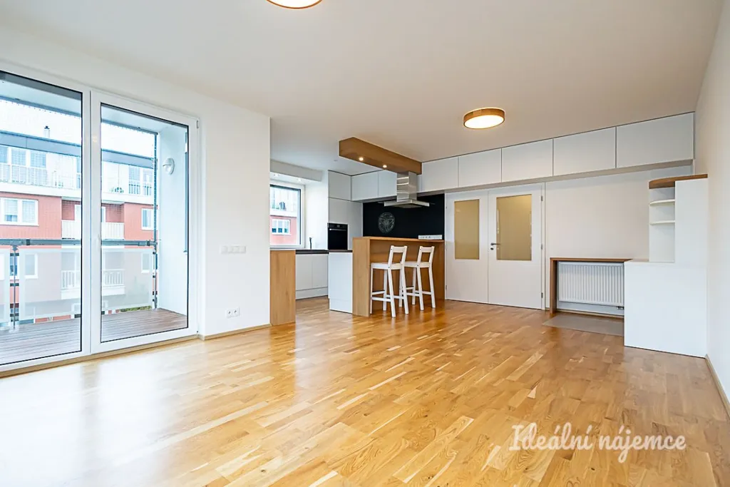 Byt je nabízen nezařízený, což dává možnost uzpůsobit si interiér podle vlastního vkusu. Kuchyně je vybavena lednicí s mrazákem, elektrickou troubou, indukční varnou deskou, digestoří, úložným prostorem a praktickou pracovní plochou s barovým posezením. Obývací část disponuje rozměrným a světlým prostorem, který lze vybavit jak sedací soupravou, tak i například jídelním koutem. K dispozici jsou dva samostatné pokoje, které mohou sloužit jako ložnice, dětský pokoj či pracovna. Jeden z pokojů je zařízen praktickou vestavěnou skříní. Koupelna disponuje sprchovým koutem i vanou, umyvadlem, toaleta je umístěna samostatně.