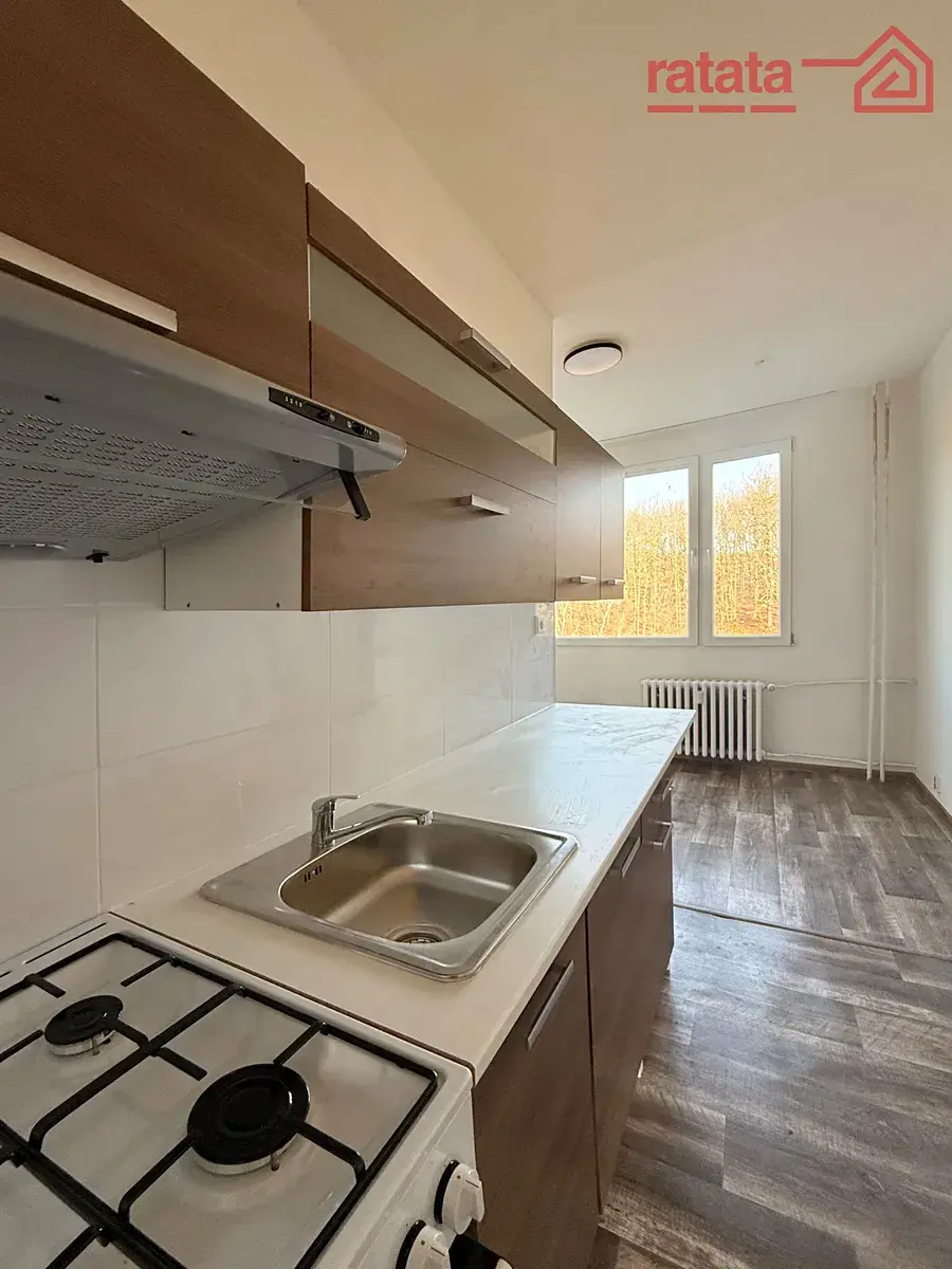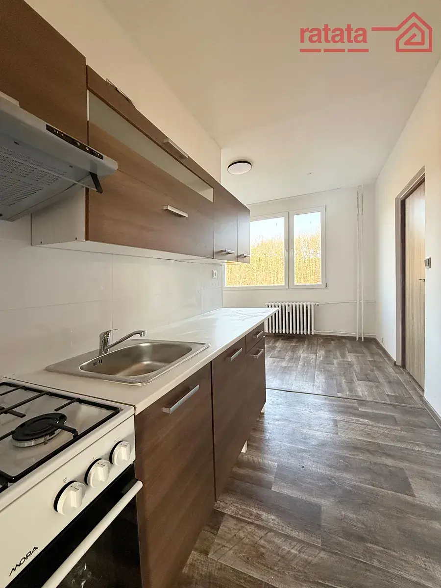 Je to čistý a slunný byt. Je zde kuchyňská linka, plynový sporák, vana, umyvadlo a WC. Na podlahách je položeno lino. Byt je volný k nastěhování IHNED.