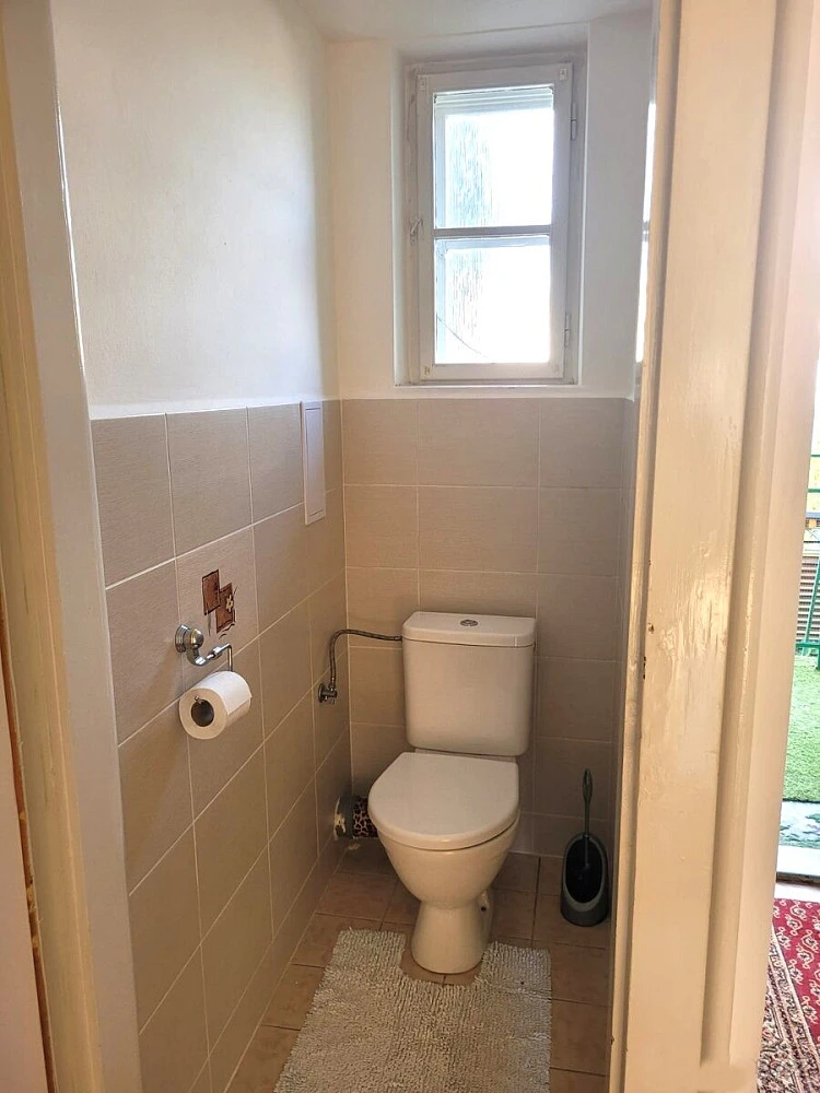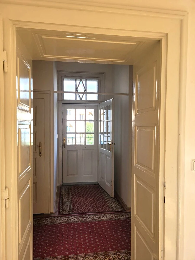 Byt se nachází v 1. patře cihlového domu s vysokými stropy. Na patře je pouze tento byt- zaručuje tak soukromí.