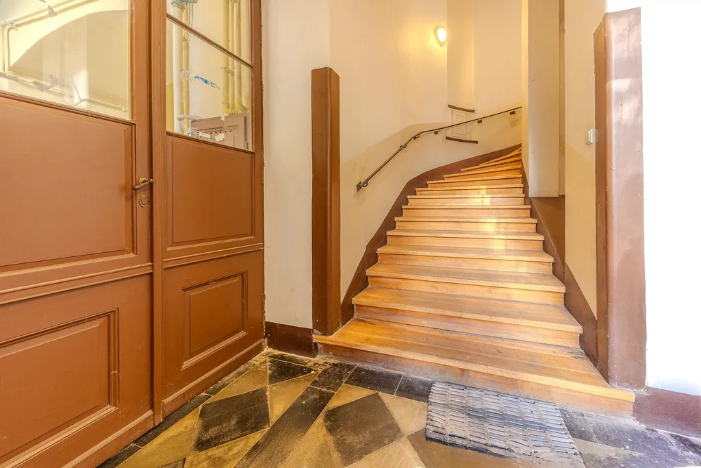 Z pavlače, obrácené do vnitrobloku se vzrostlým stromem, se vstupuje do společné chodby, odkud vedou dva samostatné vstupy – každý do jednoho z bytů. Obě jednotky mají vlastní uzamykatelné dveře a mohou tak být zcela nezávisle využívány. Menší byt má okna orientovaná právě do tohoto tichého dvora, zatímco větší byt je situován směrem do Liliové ulice a nabízí výhled do historického centra s působivou staropražskou atmosférou.