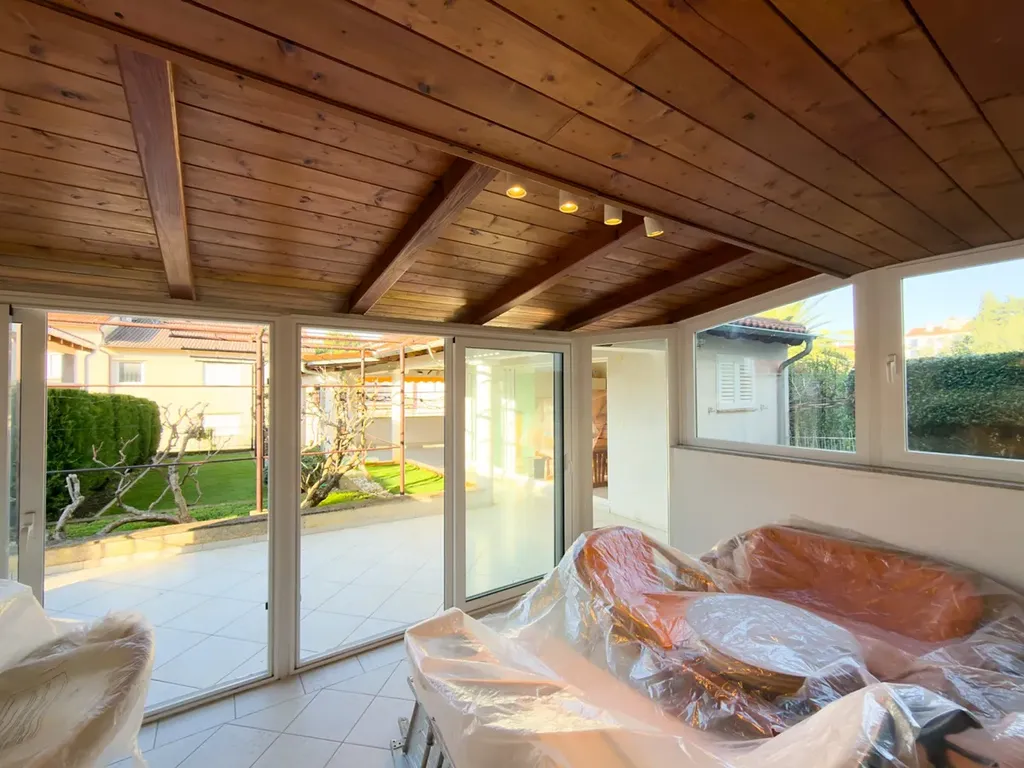 Prostor je velmi příjemný, propojený se zahradou, orientovaný na jih – ideální k celoročnímu odpočinku.