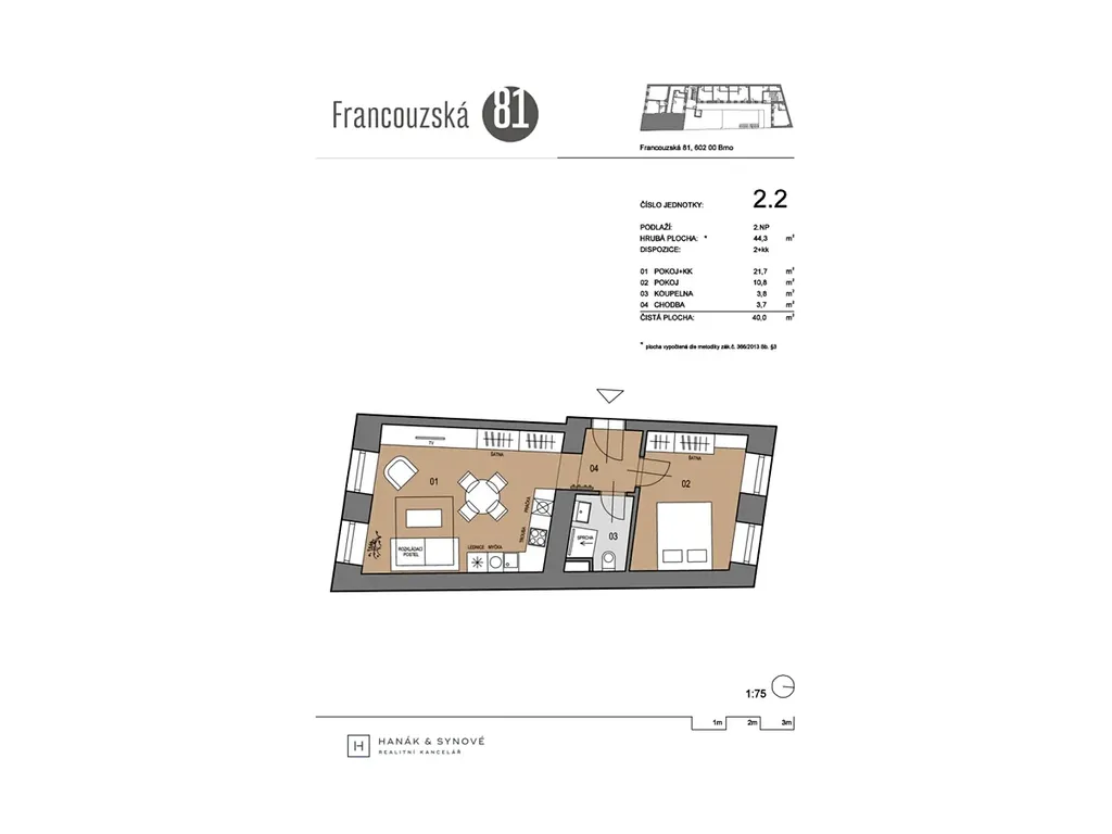 Pronájem bytu 2+kk, Brno, Francouzská, 44 m2