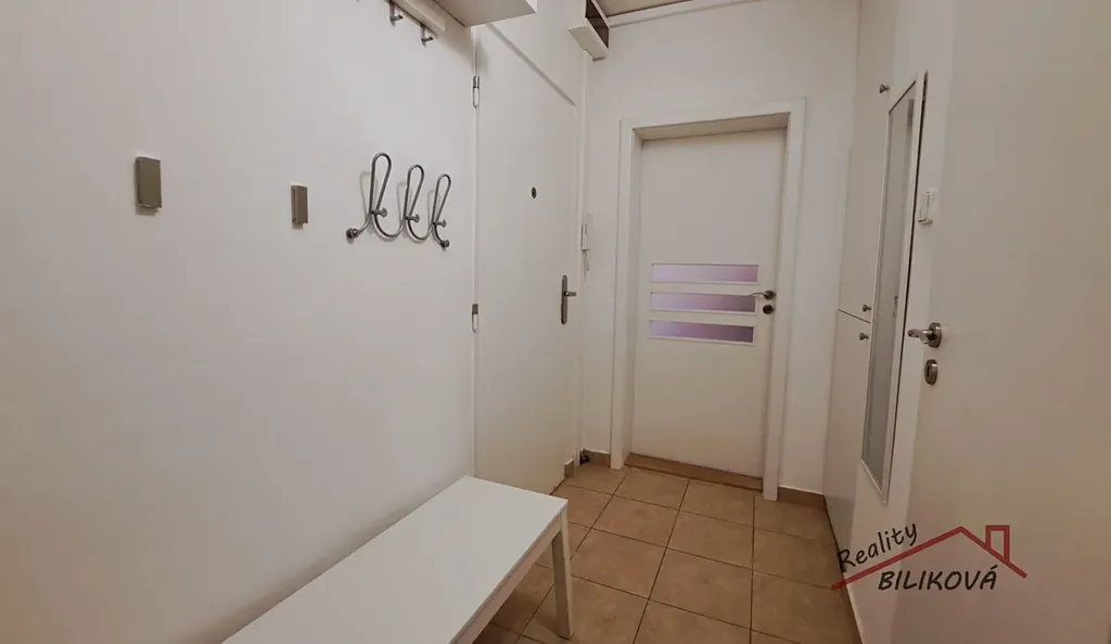 Byt má zděné jádro. Na podlahách - dlažba, plovoucí podlahy, koberec v ložnici.