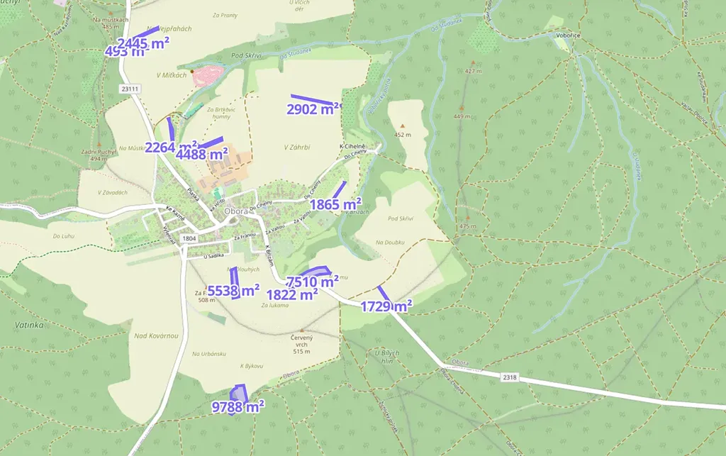 Dle pracovního návrhu (stav k 25. 11. 2025) bude stávající výměra převedena do nově uspořádaných pozemků 89/1–89/6, 1408/1 a 85/34, a to o celkové výměře 40 846 m².