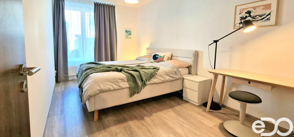 Nabízíme k podnájmu kompletně zařízený byt 2+kk (59 m²) s terasou a vlastní zahradou (86,5 m²) ve vyhledávané lokalitě Britská čtvrť, pouhé 4 minuty chůze od metra Stodůlky. Součástí nájmu je vyhrazené parkovací stání.